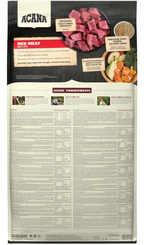 Completamente privo di glutine, ACANA CLASSICS Classic Red è pieno al 50% di carne – quasi il doppio di quello che contiene la maggior parte degli alimenti speciali per cani.