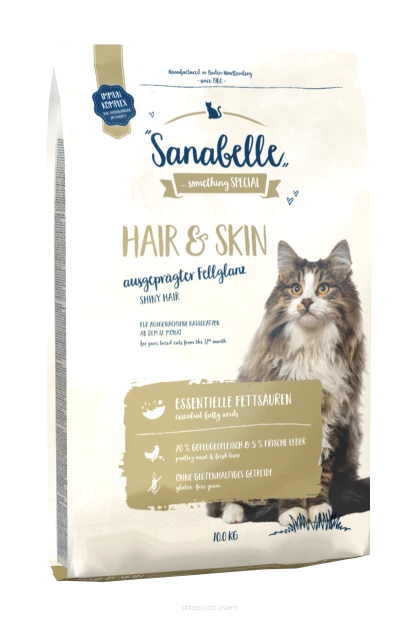 Sanabelle Hair & Skin è un alimento secco per gatti dall’età di 12 mesi sviluppato per migliorare il pelo e la pelle. È stato sviluppato con particolare attenzione alle delicate esigenze dei gatti di razza e alla loro elegante e lucida pelliccia.