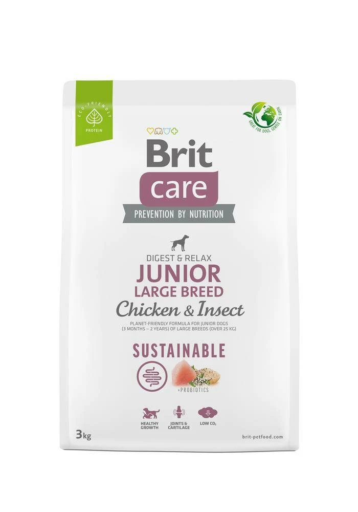Alimento completo a base di pollo e insetti, sviluppato per cani giovani (3 mesi – 2 anni) di razze grandi (peso target superiore a 25 kg). La formulazione biologica dell’alimento contribuisce a garantire una sana digestione e a ridurre lo stress, con ingredienti che migliorano l’umore del cane. La formula contiene proteine facilmente digeribili con una serie completa di aminoacidi, garantendo così uno sviluppo fisico ottimale e la formazione delle difese immunitarie dell’animale in crescita. Il pollo, facilmente digeribile, aiuta a costruire muscoli forti, mentre le proteine ipoallergeniche degli insetti rendono il pasto appetibile. La formula senza glutine favorisce una corretta digestione nei cuccioli e nei cani giovani. Il contenuto di acidi grassi insaturi omega-3, condroprotettori e lievito di birra favorisce il corretto sviluppo e la crescita del cucciolo in una fase fondamentale della vita. L’utilizzo di soluzioni e ingredienti ecologici riduce l’impatto negativo sull’ambiente del 35% rispetto agli alimenti a base di carne rossa.