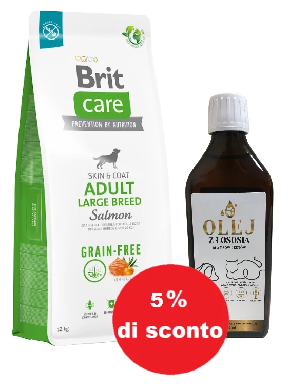 mescolare all’alimento esistente e aumentare gradualmente la dose dell’alimento Brit Care nell’arco di 7 giorni. La dose giornaliera può variare