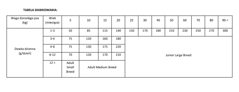 a seconda dell’ambiente, dell’attività e dell’età del cane. Assicurarsi che il cane abbia sempre accesso a una ciotola d’acqua fresca. Conservare in un