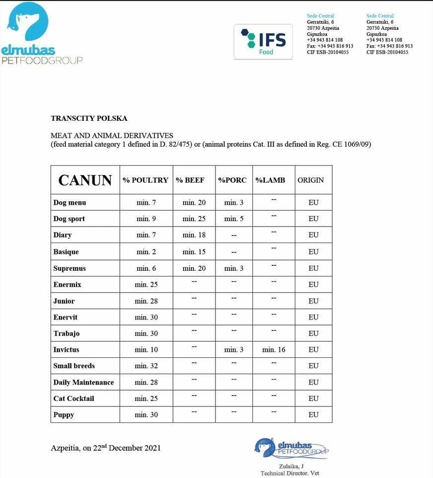 Canun Supremus è un alimento con granuli più grandi, consigliato per cani adulti di tutte le razze e dimensioni. La sua alta qualità è confermata dagli allevatori di pastori tedeschi, sia in Polonia che all’estero. Questo alimento è eccellente per l’alimentazione di cani con una normale attività fisica. Canun Supremus non ha solo una ricca composizione di carne, cereali – mais, oli, grassi, prodotti di origine vegetale, insieme di vitamine e minerali, pesce e prodotti di origine ittica), ma anche proprietà disinfettanti, che lo rendono perfetto per i cani che mangiano avidamente cibo avariato durante le passeggiate, ad esempio. Canun Supremus aiuta anche a mantenere il pelo del cane in buone condizioni.