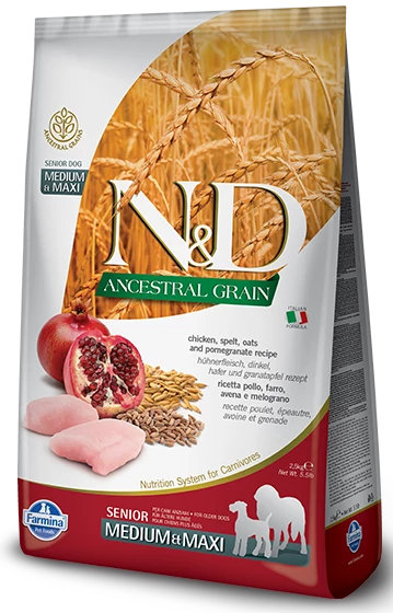 Farmina N&D Ancestral Grain Canine Senior Medium&Maxi Chicken&Pomegranate – del prodotto