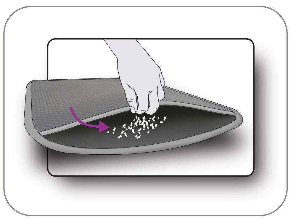 Il doppio strato appositamente sviluppato garantisce che le zampe del gatto a contatto con il tappetino vengano pulite – la lettiera viene trattenuta all’interno del tappetino.