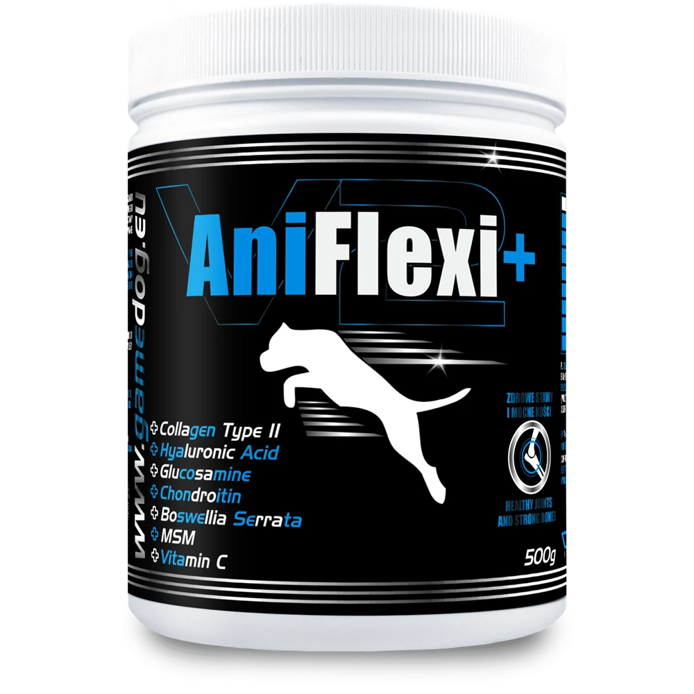 AniFlexi+ è un innovativo integratore alimentare multi-ingrediente per cani per sostenere la normale funzione del sistema muscolo-scheletrico. È raccomandato per gli animali con disfunzioni articolari e per i cani giovani durante il periodo di crescita intensiva con anomalie di sviluppo della cartilagine articolare.