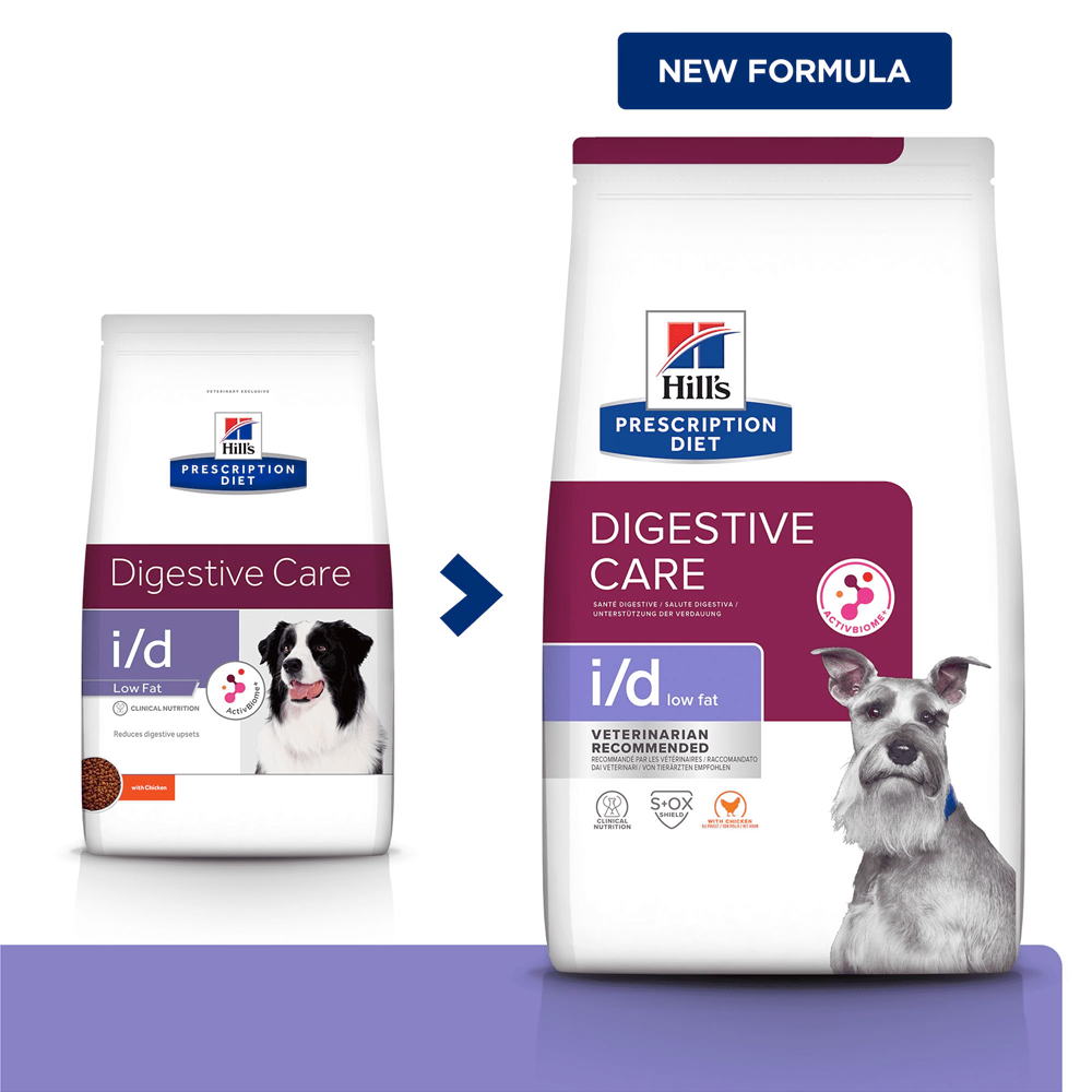 Il cibo secco per cani Hill’s Prescription Diet i/d soddisfa le esigenze nutrizionali del cane e può essere utilizzato per un lungo periodo di tempo. Consultate il vostro veterinario per ulteriori informazioni su come gli alimenti Prescription Diet possono aiutare il vostro cane a godere di una vita attiva e sana. Gli alimenti secchi e umidi possono essere mescolati o somministrati contemporaneamente.