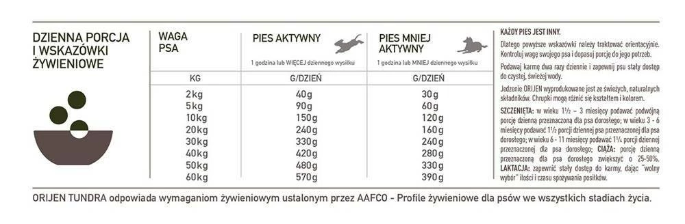 Composizione del cibo per cani Orijen Tundra