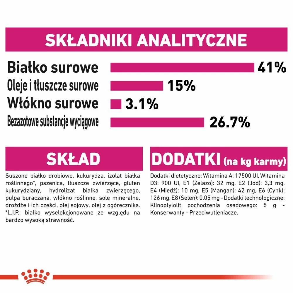 ROYAL CANIN Protein Exigent è caratterizzato da un appropriato equilibrio di proteine, carboidrati e grassi e da una palatabilità superiore. L’alimento è caratterizzato da un adeguato livello di energia, favorendo il mantenimento del normale peso corporeo. Formulato per sostenere il tratto urinario nei gatti adulti.