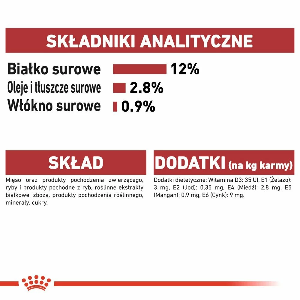Il cibo per cani ROYAL CANIN Instinctive in salsa è caratterizzato da un livello di grassi ottimale, che copre il fabbisogno energetico. La composizione unica di fibre alimentari e il livello appropriato di proteine assicurano la sensazione di sazietà. L’alimento perfettamente bilanciato copre perfettamente il fabbisogno di energia e nutrienti, garantendo al gatto di mantenere una figura corretta.