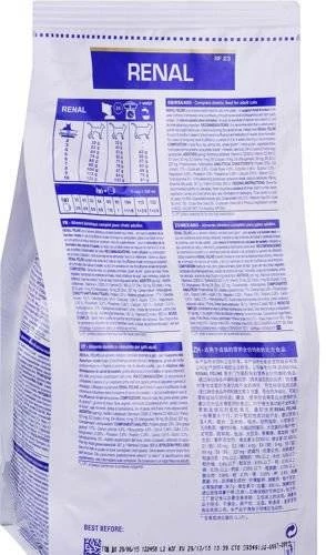 Il cibo secco RENAL previene anche la formazione di calcoli di ossalato, grazie al suo basso contenuto di calcio e vitamina D e alle sue proprietà urino-alcaline.