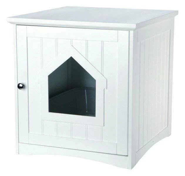 Ottima proposta per tutte le persone sensibili all’estetica. Un’affascinante casetta per gatti a forma di cubo può servire sia come posto per un letto che come involucro per la lettiera. Il prodotto è fatto di tavole MDF laccate, che sembrano estremamente eleganti e allo stesso tempo sono durevoli e solide. Nella parte anteriore c’è una porta con una chiusura a calamita e una finestra decorativa, attraverso la quale il vostro gatto può passare liberamente. Sul retro dei mobili ci sono dei fori di ventilazione nascosti per facilitare la circolazione dell’aria. Pulizia facile e veloce grazie alla grande porta sul davanti.