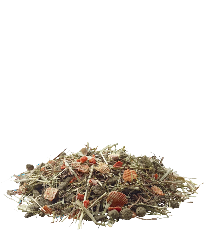 - Prodotti vegetali (erba ed erbe 28%: coda di topo, piede di gallo, erba blu del Kentucky, erba di prato, festuca, festuca, trifoglio bianco, trifoglio rosso, coda di volpe, piantaggine, dente di leone, achillea)